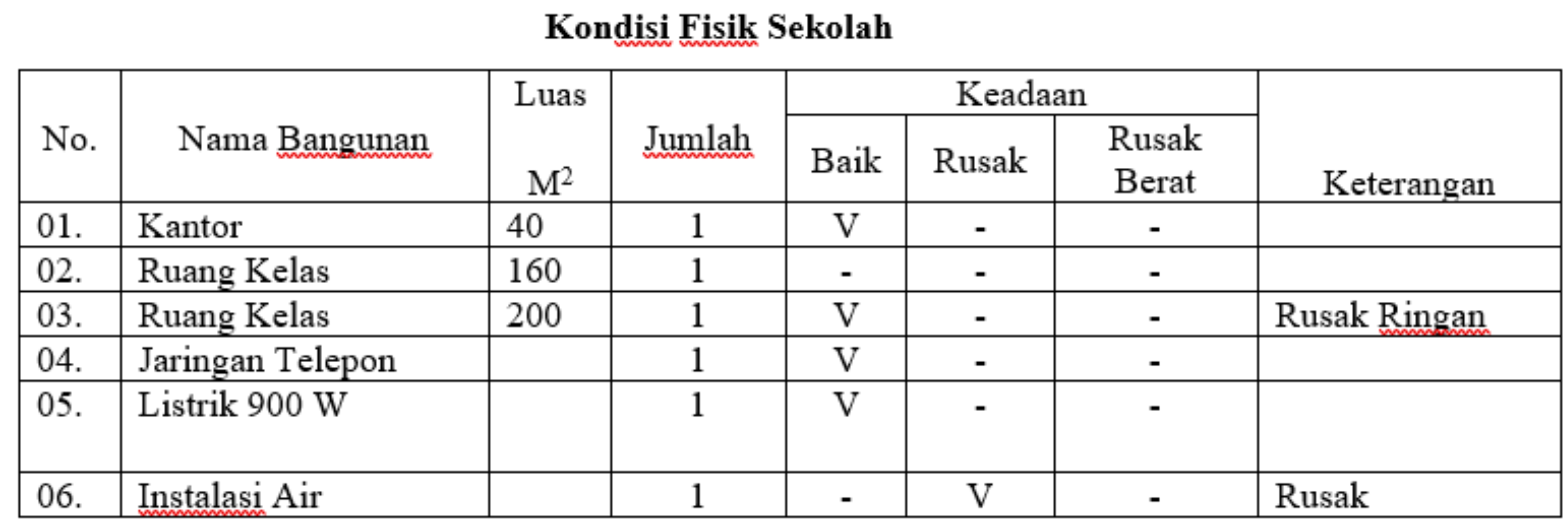 Kondisi Fisik Sekolah